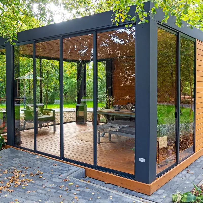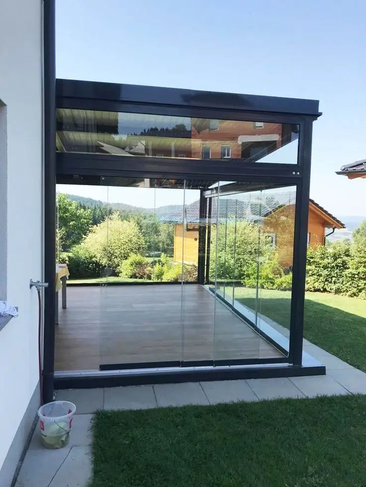 - هياكل الدعم: يتم غالباً استخدام الألومنيوم أو الحديد المعالج أو البرجولات الخشبية لدعم الزجاج، مع التركيز على المتانة ومقاومة الصدأ.