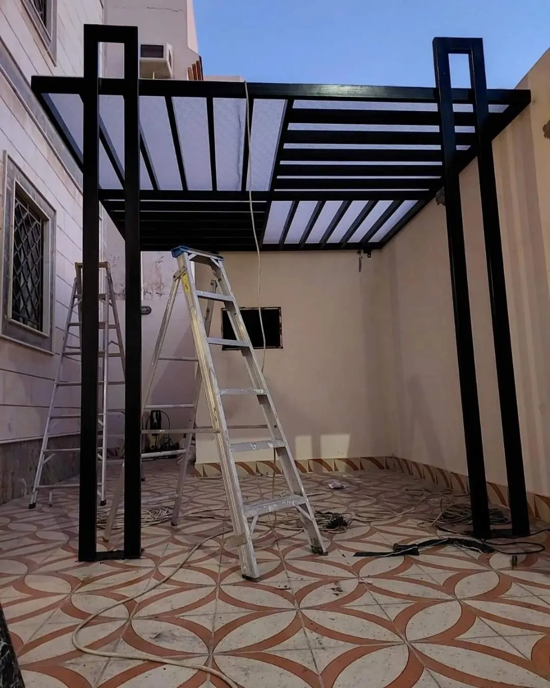 - المتانة: سماكة الحديد أو الألومنيوم يجب أن تتناسب مع حجم البرجولة وارتفاعها لضمان مقاومة الرياح.