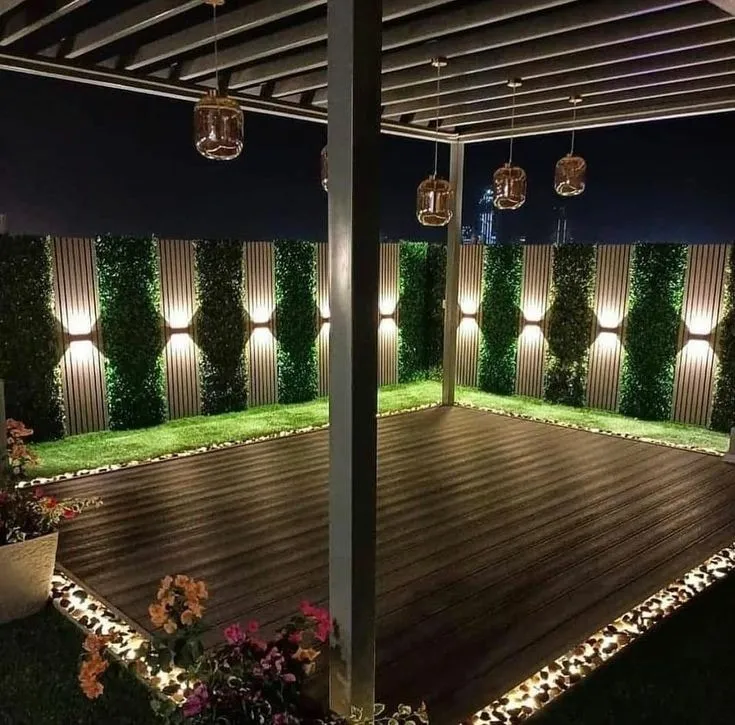 - التصميم: لم يعد يكفي مجرد تركيب برجولة، بل أصبحت الحاجة ملحة لدمجها مع عناصر طبيعية. يتضمن ذلك استخدام الشلالات الجدارية المصغرة، النباتات المتسلقة على أعمدة البرجولات (مثل الجهنمية)، والإضاءة المخفية الدافئة لخلق أجواء استرخاء مثالية.