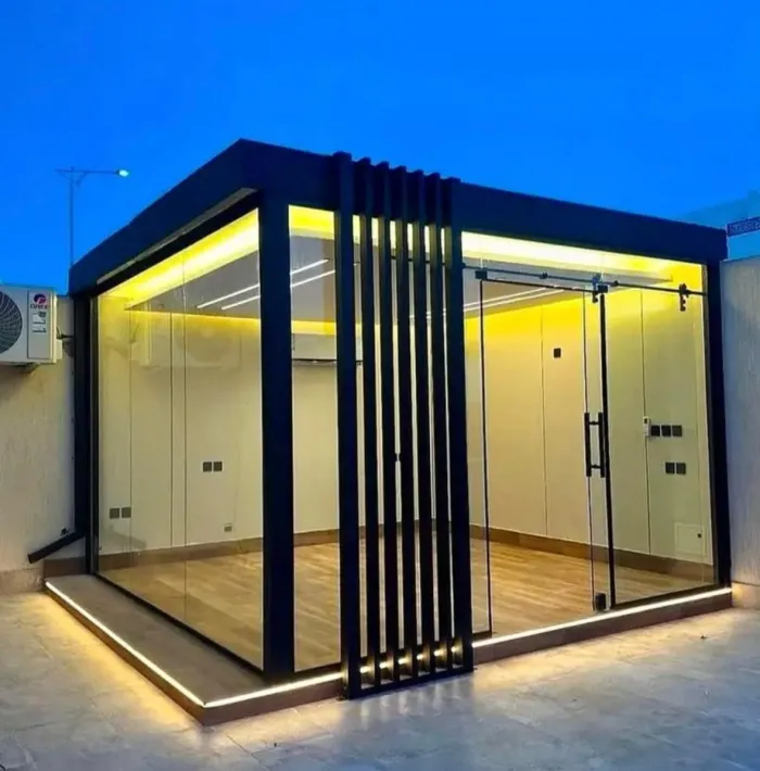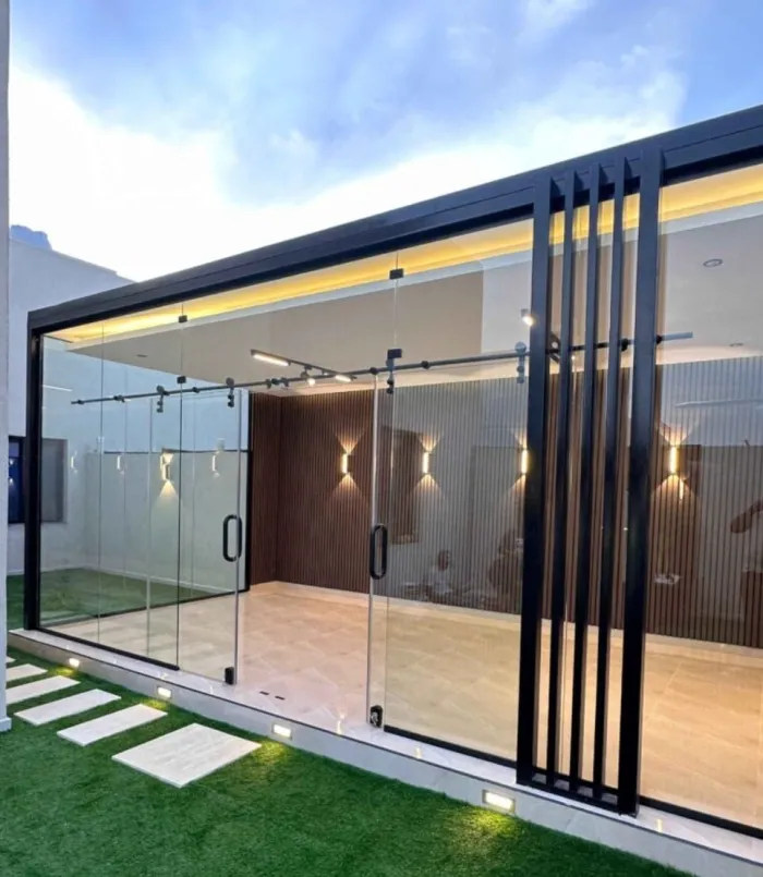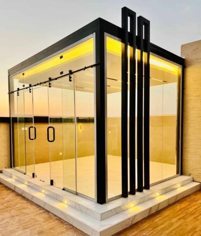 - الإضاءة الليلية: الاعتماد على إضاءة LED مخفية وأضواء أرضية لإبراز جمال المجلس الزجاجي ليلاً وتحويله إلى نقطة جذب.