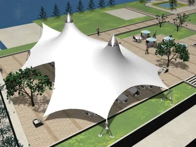 مظلات الشد الإنشائي :هي هياكل تعتمد على توتير أو "شد" غشاء مرن وقوي (قماش أو غشاء صناعي) على إطار أو هيكل معدني، يتم تثبيته بواسطة كابلات وأوتاد فولاذية قوية. يضمن هذا الشد توزيع الأحمال بكفاءة فائقة، مما يجعل الهيكل قادراً على تحمل: