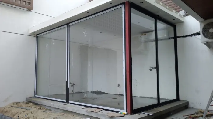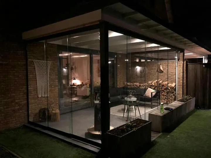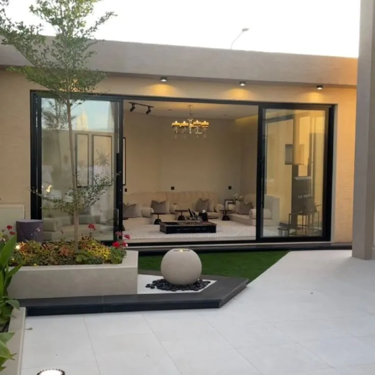 استخدام واجهات زجاجية (سترکشر) ليس فقط يعطي مظهراً مودرن وفخماً، بل قد يقلل من تكاليف اللياسة والدهانات الداخلية والخارجية للجدران المستبدلة.ديكورات خارجية أنيقة للحوش بأقل التكاليف