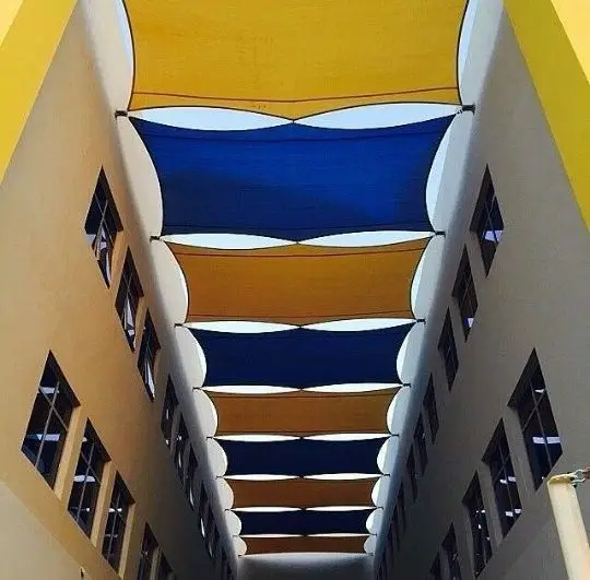 - الميزة: تمتاز بقدرة فائقة على عزل الأشعة فوق البنفسجية ومقاومة الحريق.الشكل: تأتي بتصاميم "مخروطية" أو "قوسية" تعطي طابعاً انسيابياً.