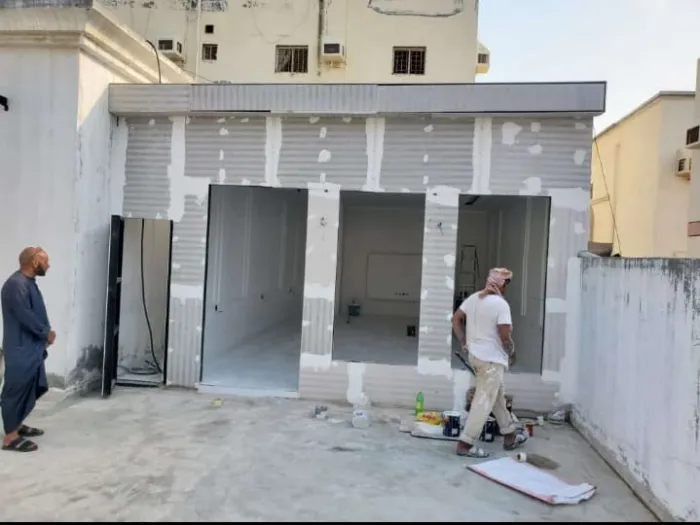 تُعالج الفواصل بمواد خاصة، ثم يتم الدهان أو تركيب "الكسر الرخامي" أو "البروفايل" الخارجي، لتظهر الغرفة وكأنها بناء خرساني طبيعي.تكلفة ملاحق اسمنت بورد بجدةومكةوالطائف: