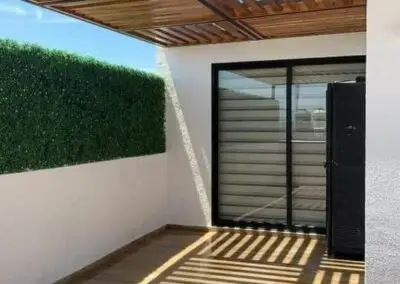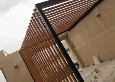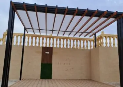 المميزات: مقاومة للرياح الشديدة، تكلفة أقل من الخشب، وإمكانية دمجها مع التغطيات القماشية أو "اللكسان".