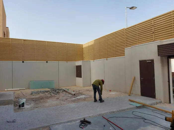 - طريقة التثبيت: استخدام بليتات وعمدان بسمك عالي لضمان ثبات الساتر ضد العواصف.