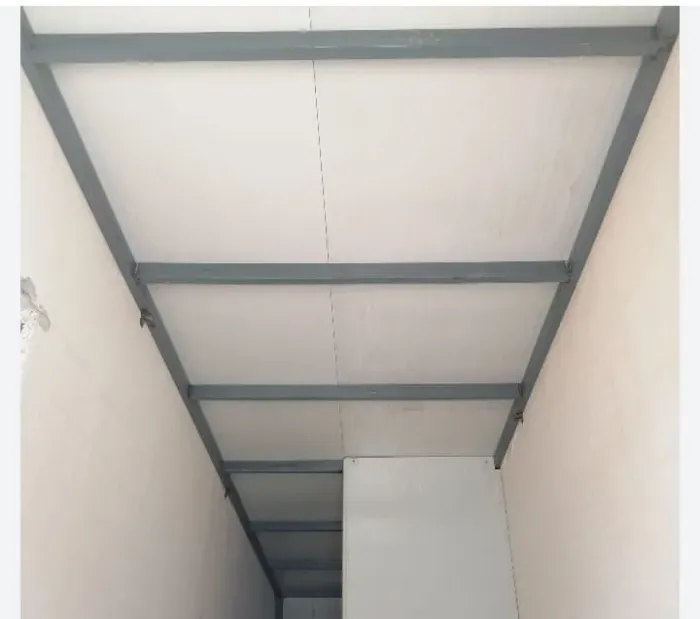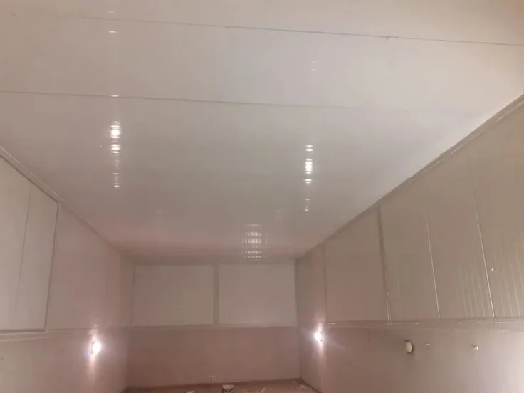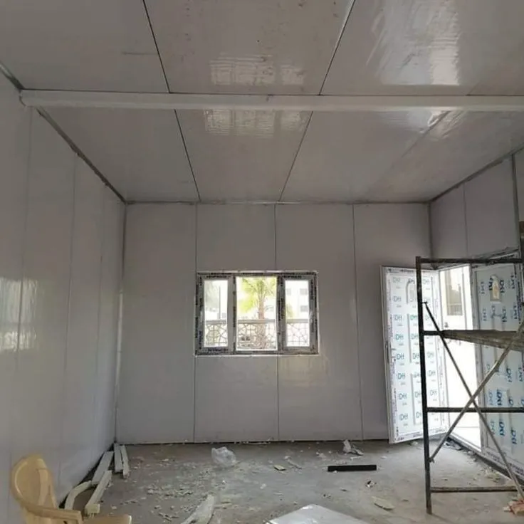 رابعاً: التشطيبات الداخلية: يمكن إضافة ألواح الجبس بورد من الداخل والدهانات لتبدو الغرفة كبناء خرساني فاخر.