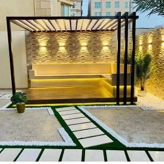- عنصر الماء والنار: إضافة شلال جداري صغير أو "مدفأة خارجية"يرفع من قيمة المكان الجمالية بشكل مذهل.