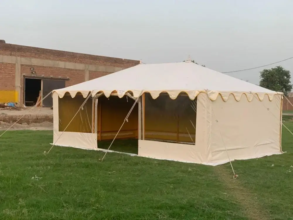 - المقاومة والعزل: يتم استخدام طبقات عزل حراري ومائي (PVC) لضمان برودة المكان صيفاً ودفئه شتاءً، ومقاومة الرياح والأمطار.