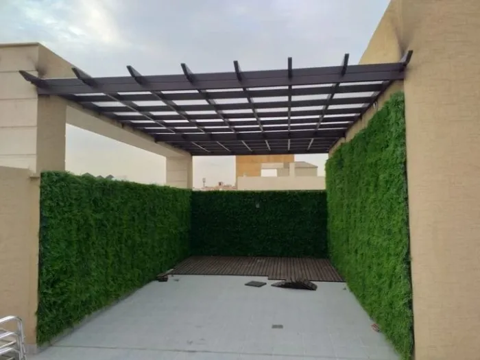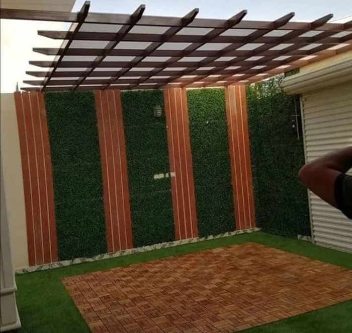 - الأرضيات: يفضل استخدام مواد مقاومة مثل الباركية الخارجي (المدموج بالبلاستيك) أو السيراميك الذي يتحمل الظروف الجوية.