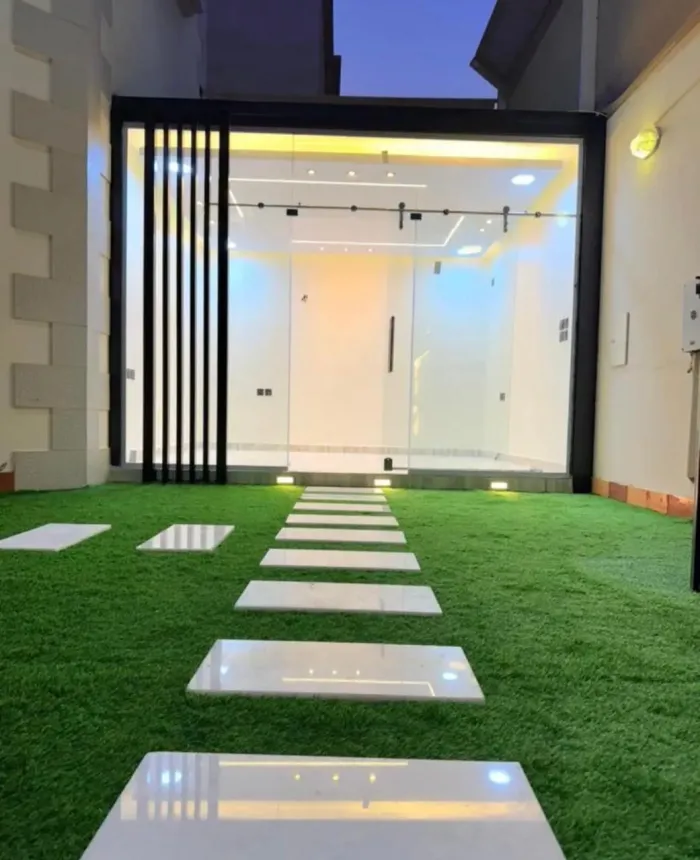 - الأرضيات: استخدام بلاط البورسلان الخارجي أو الأحجار المتداخلة لسهولة التنظيف ومقاومة الانزلاق.